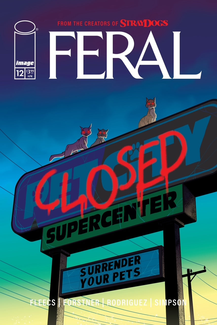 STRAY DOGS creative team of TONY FLEECS, TRISH FORSTNER & TONE RODRIGUEZ are back with  FERAL, which takes the cute and cuddly approach to flip a genre, in this case the zombie outbreak trope. Think The Aristocats meet The Walking Dead. The story centers on Elsie, Lord Fluffy Britches, and Patch, three indoor cats lost in the not-so-great outdoors during a nightmarish rabies outbreak. Without their humans to protect them, the cats rush to find their way home before they’re eaten by the forest full of rabid beasts on their tails. Their survival mantra: Don’t get bit, don’t get scratched, don’t become…feral.